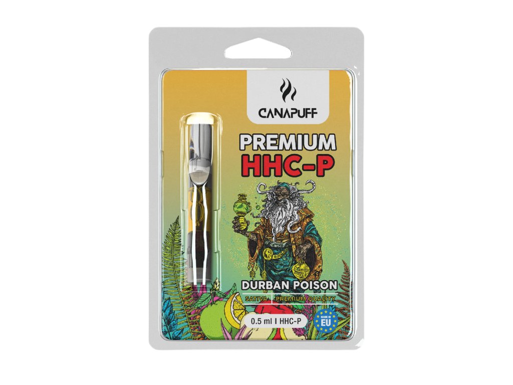 Představujeme Vám CanaPuff - DURBAN POISON - HHC-P 96% - cartridge, nejvyšší kvalitu a bezkonkurenční chuť, kterou v současné době na trhu najdete! Jedná se o vysoce koncentrovanou cartridge, která obsahuje 96% prémiový destilát HHCP a terpeny. Vše je 100% získáno z konopí, takže se můžete spolehnout na absolutní přírodní kvalitu a čistotu produktu. Tato cartridge je tedy dokonalou volbou pro každého, kdo hledá výjimečnou kvalitu a nepřekonatelný zážitek.