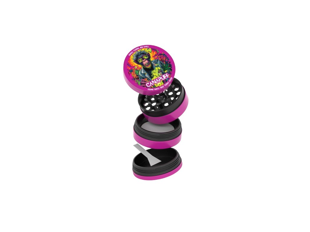Made from high-quality metal, the grinder consists of four precisely fitted parts. The two upper sections are equipped with sharp diamond-shaped teeth that ensure efficient and even grinding. The processed material falls into the middle chamber, which serves as a storage compartment. A fine mesh screen separates smaller particles, which are then collected in the bottom chamber.