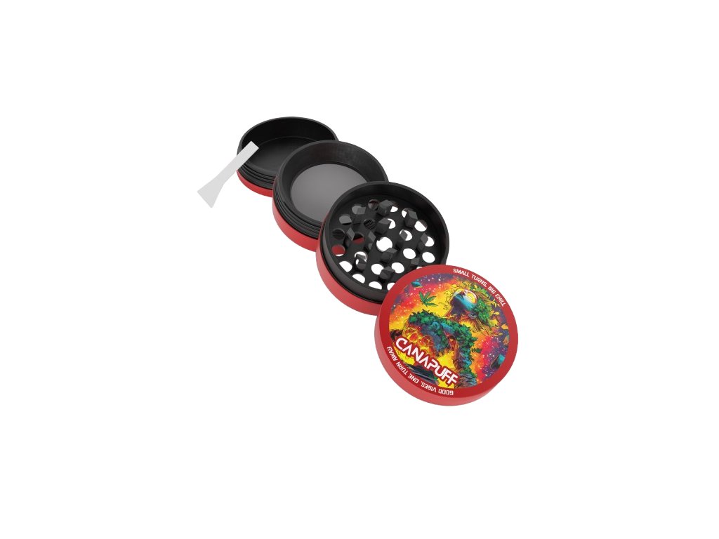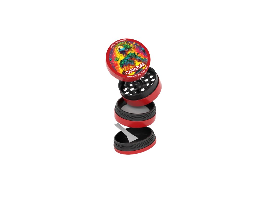 Made from high-quality metal, the grinder consists of four precisely fitted parts. The two upper sections are equipped with sharp diamond-shaped teeth that ensure efficient and even grinding. The processed material falls into the middle chamber, which serves as a storage compartment. A fine mesh screen separates smaller particles, which are then collected in the bottom chamber.