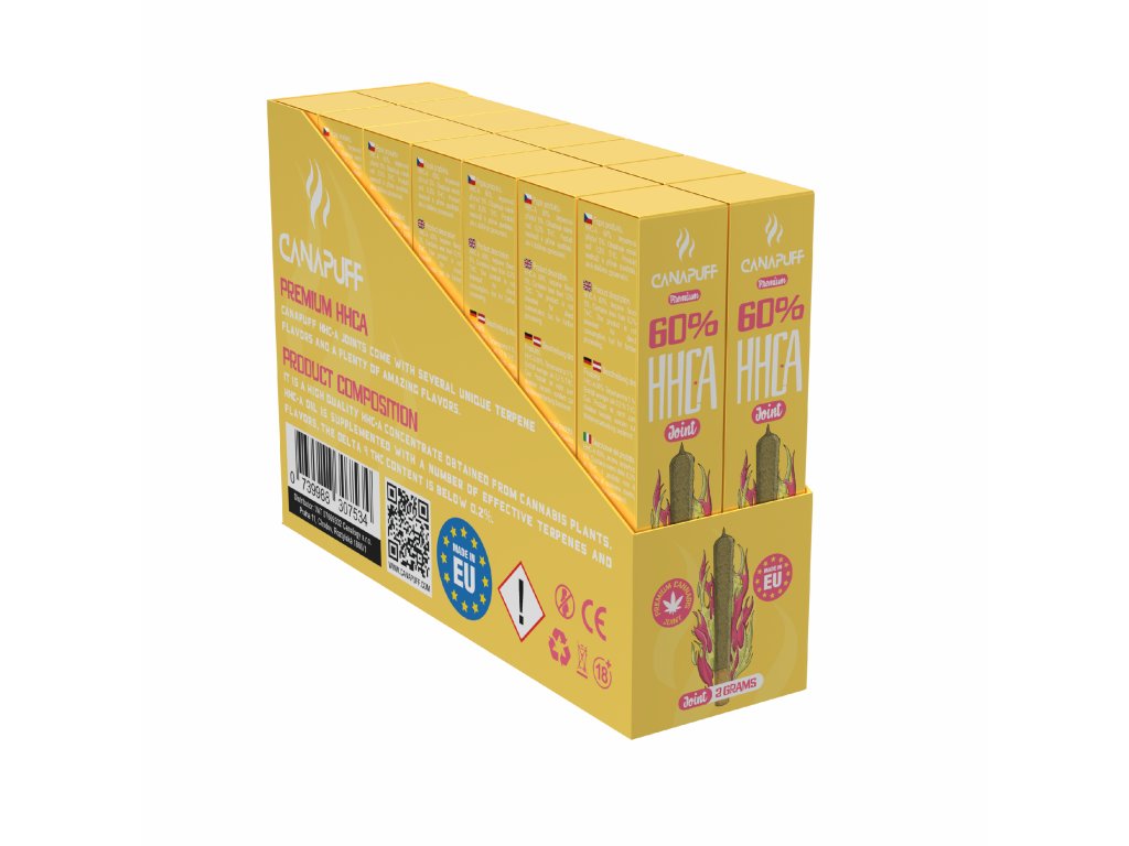 Objevte výjimečnou kvalitu HHC-A jointů od společnosti Canapuff, která vám přináší jedinečný zážitek. Naše HHC-A jointy jsou k dispozici v několika neodolatelných příchutích, které uspokojí i ty nejnáročnější chuťové pohárky. Každá příchuť je pečlivě vybrána a zpracována tak, aby vám poskytla nejčistší a nejintenzivnější chuťový zážitek. Naše HHC-A jointy jsou vyrobeny z prvotřídních surovin a podléhají přísné kontrole kvality, což zajišťuje, že každý výrobek splňuje naše vysoké standardy. S Canapuff si můžete být jisti, že dostáváte to nejlepší, co trh nabízí, s jemným tahem, který potěší každého znalce.